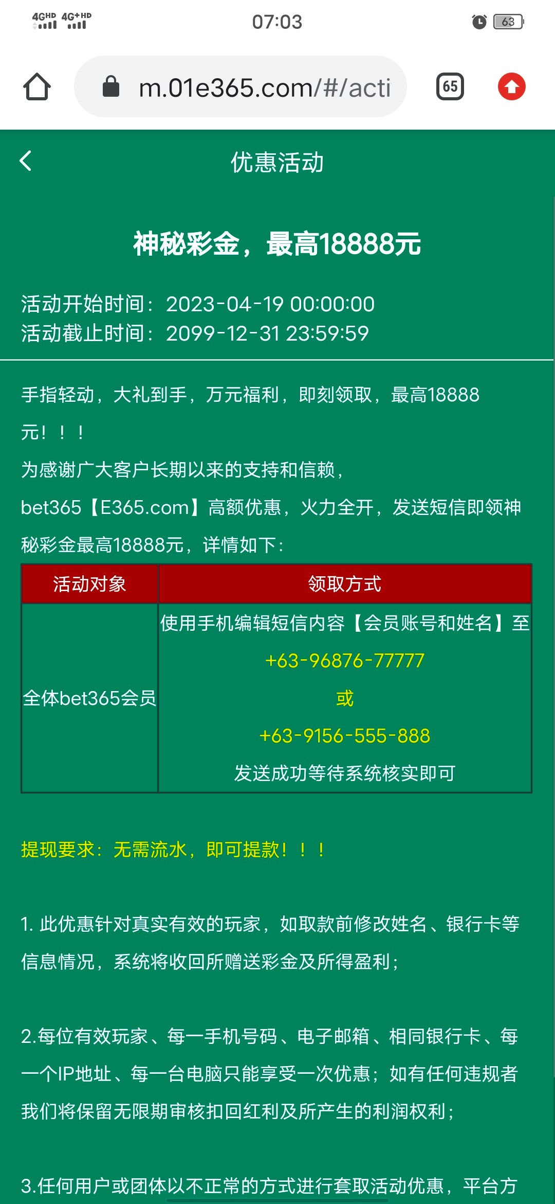 新老用户按照要求发送短信内容可以领取短信彩金,IP不是很严格,亲测多IP6小时送了,我只送了8,没充值过,看各位领到多少喽,欢迎评论区交流(红了的兄弟别把我忘了哈)