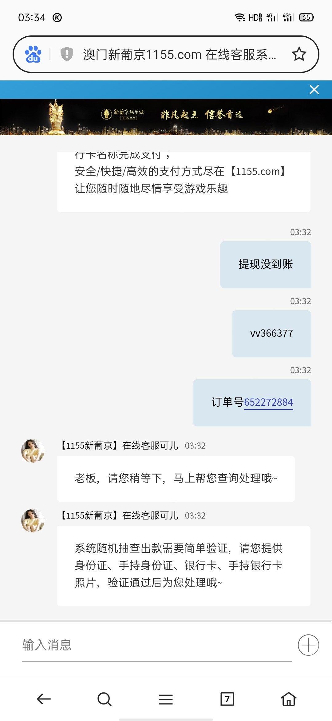 老板,当前取款的会员较多,财务正在按序处理当中,已通知财务尽快处理,耽误您的宝贵时间还请您谅解呢~