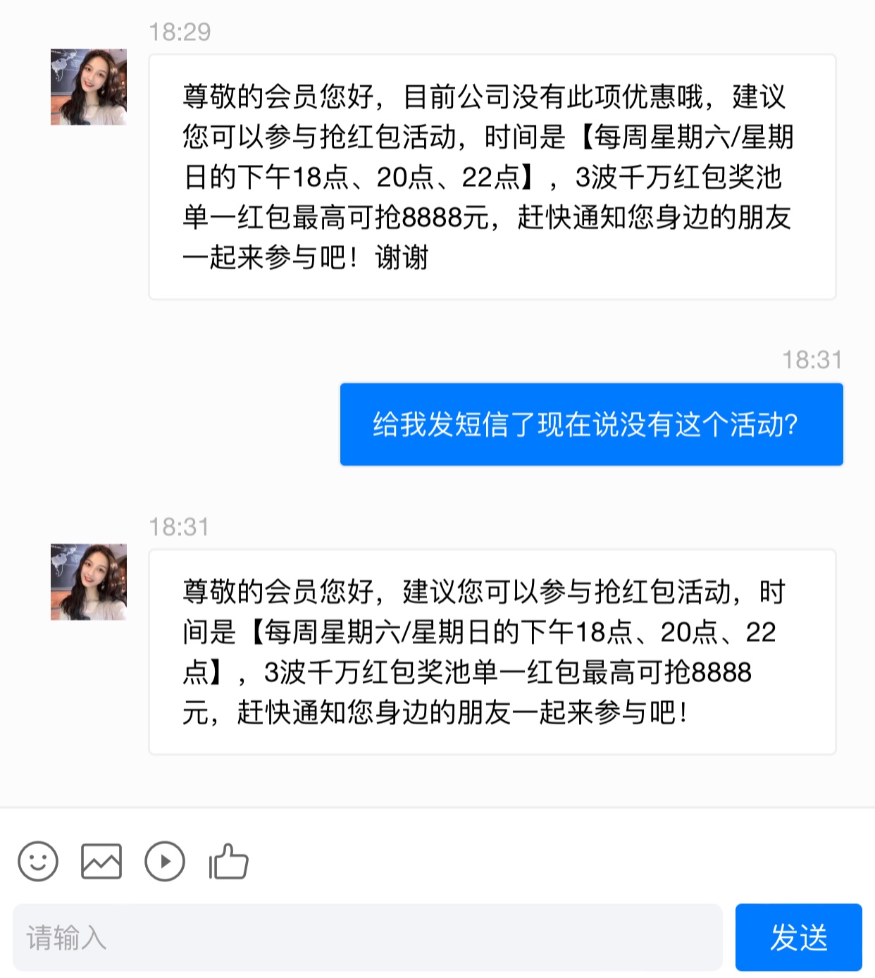 尊敬的会员您好,此活动已经截止了哦,今天有抢红包,请您准时进入澳门银河APP进行抢哦,谢谢~