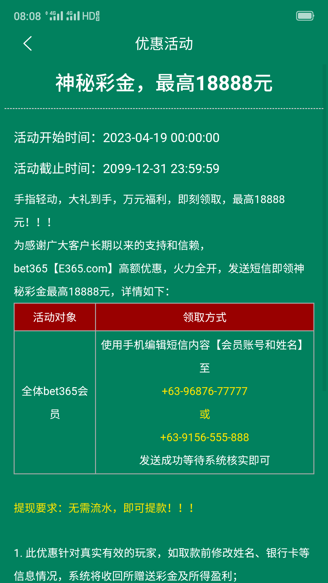 e365短信申请神秘彩金