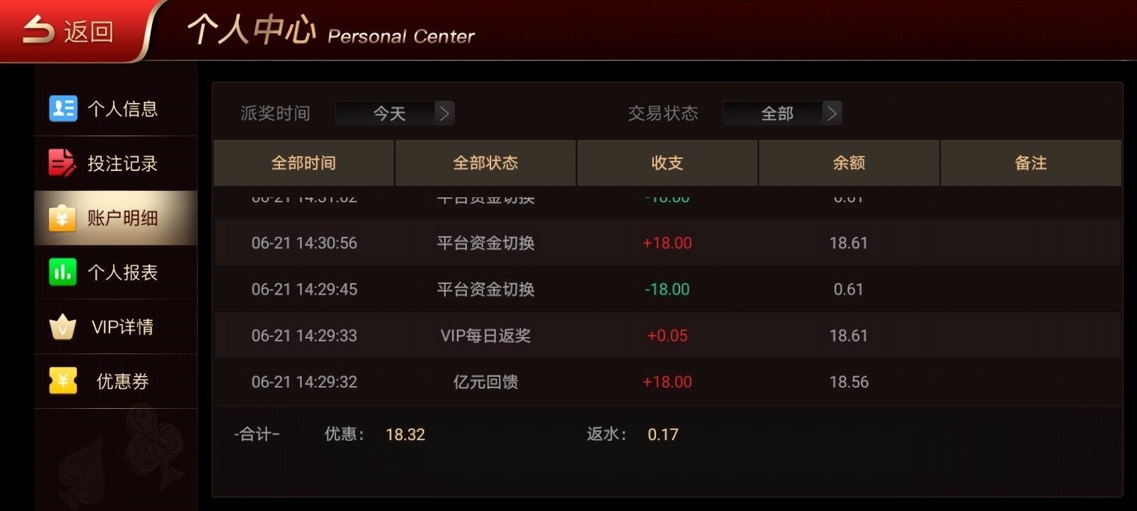 有号的去看看有回馈彩金,我的送了18一点水没有,可能是我太帅的缘故吧