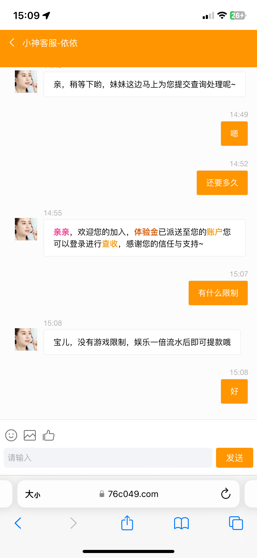 你申请的是短信还是注册彩金
