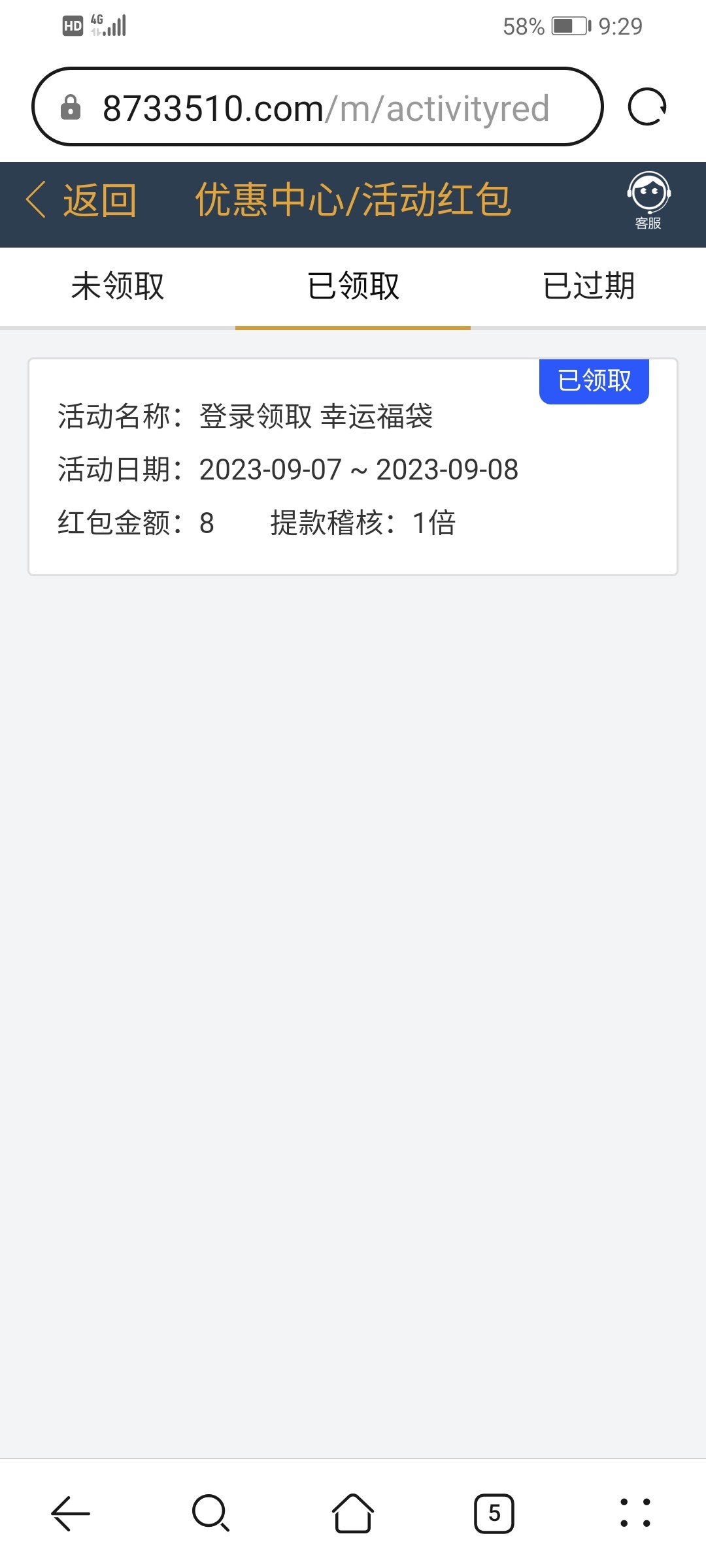 登录点我的,活动红包领取8