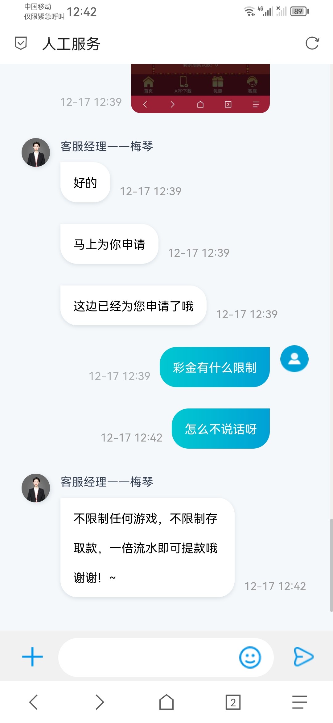 新葡京电话回访彩金,想去碰的试一下,直接跟客服说特邀彩金,然后他会教你怎么弄很简单不用下载东西