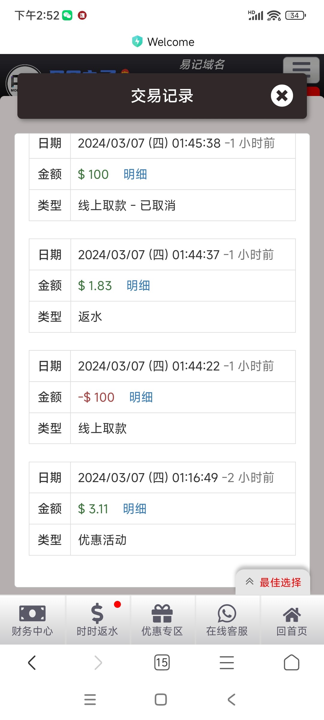 老特邀号,签到送了3。打到120提款让充50余额一倍水提。打到