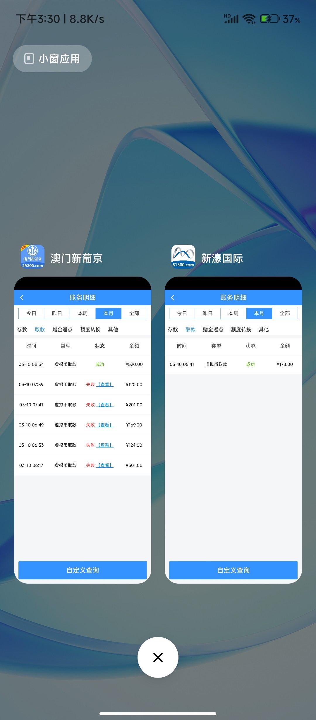 那个新濠打到600出不了,梭哈了,没了。