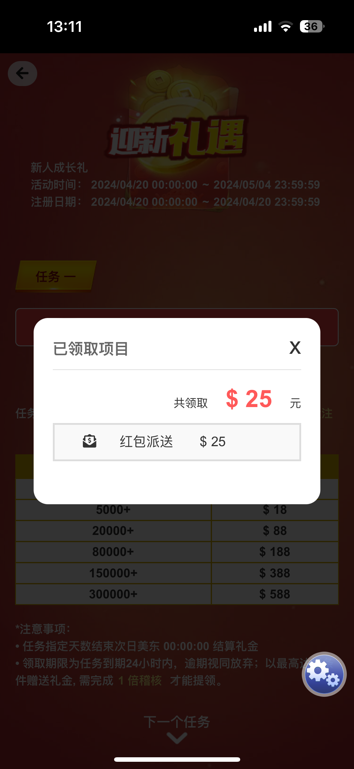 这是参加了首存送的25元