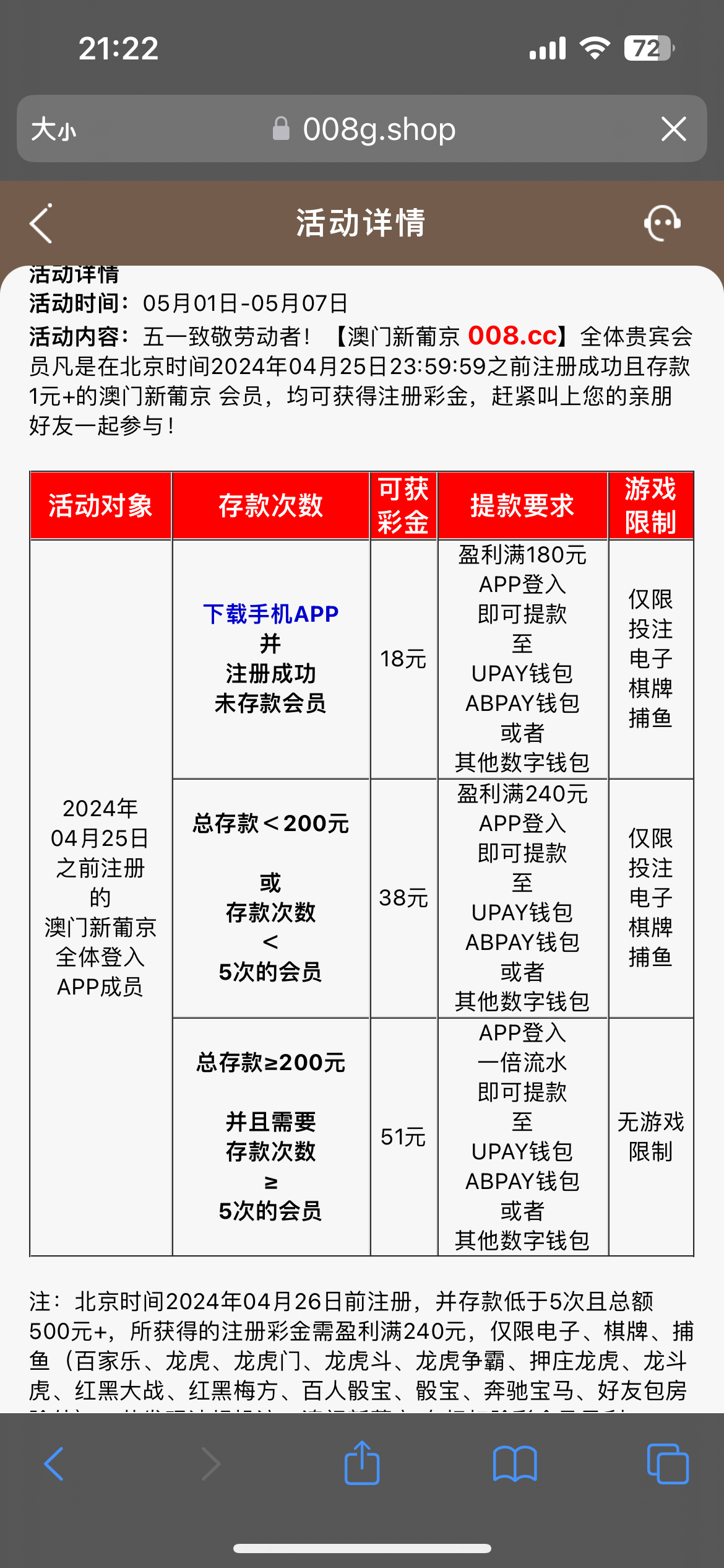 008登录五一回馈彩金