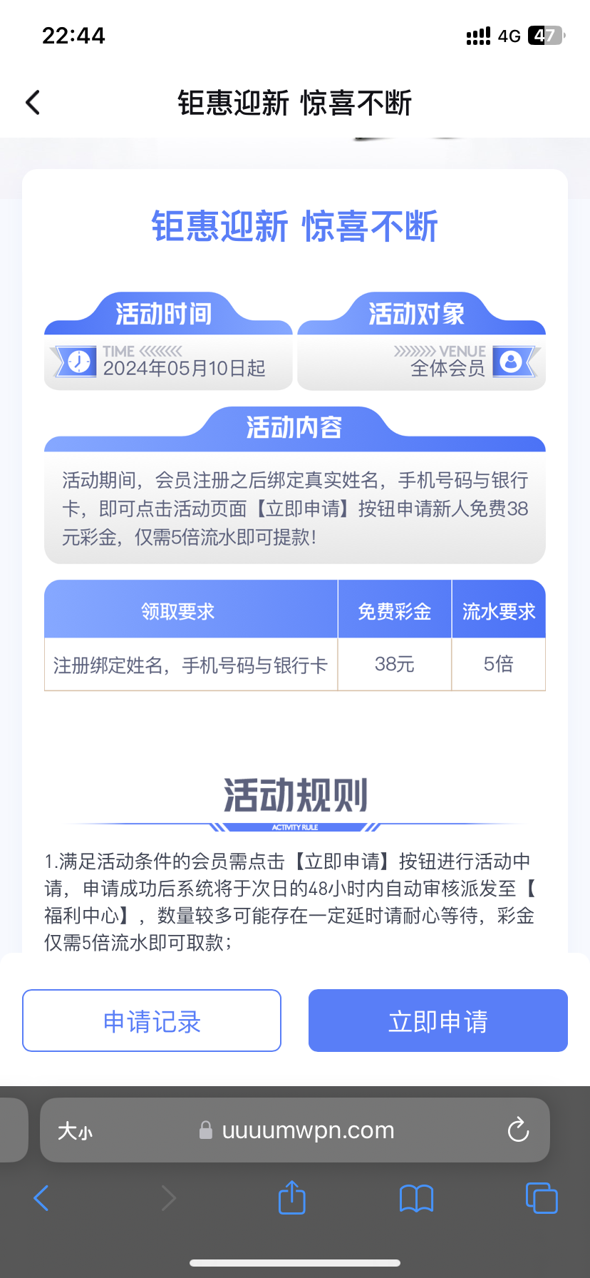 现在注册申请送38元