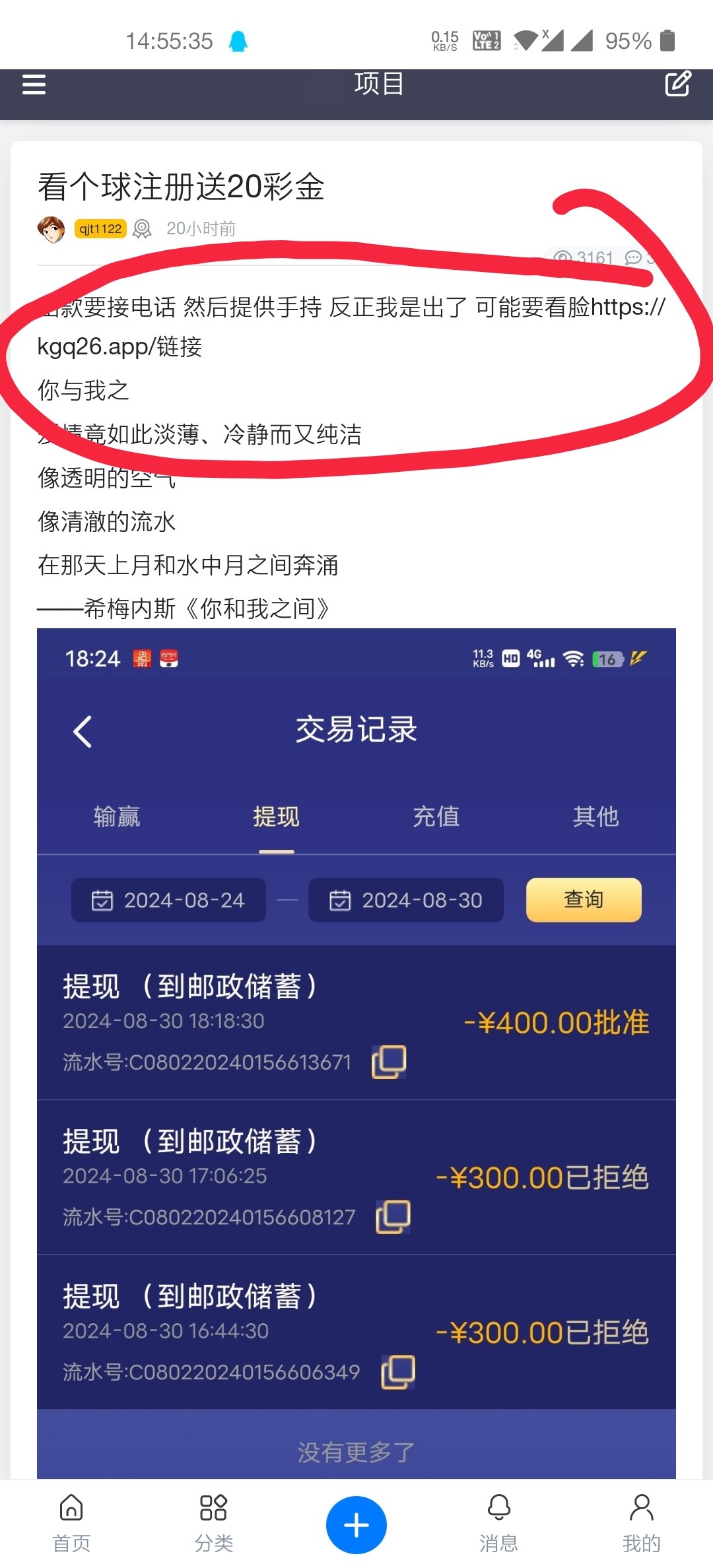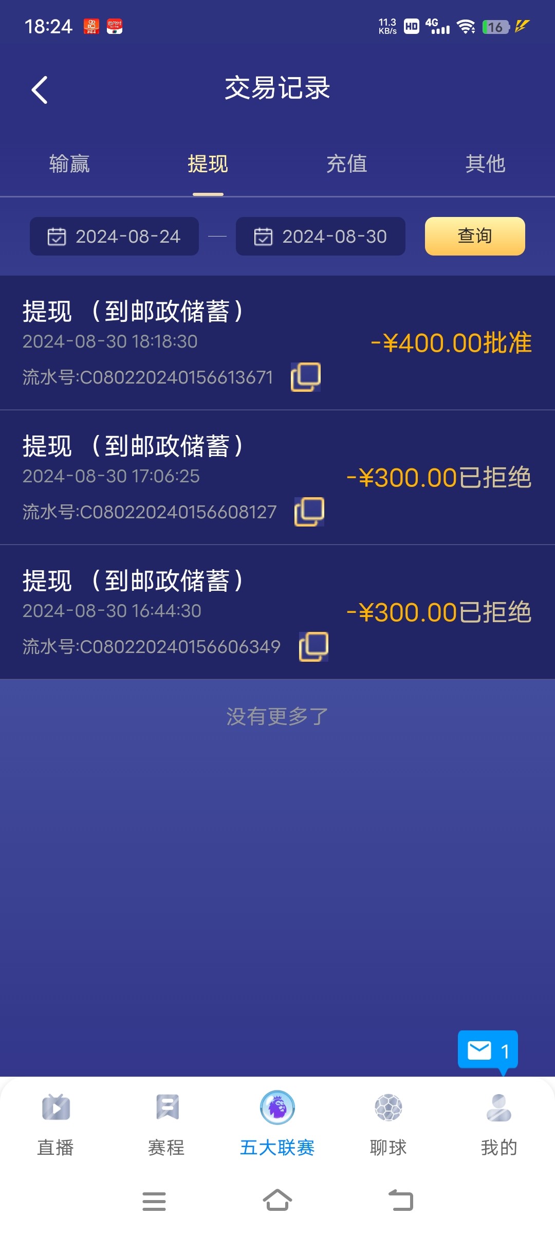 最低提现300 害我买球赛输了 不然早提现了