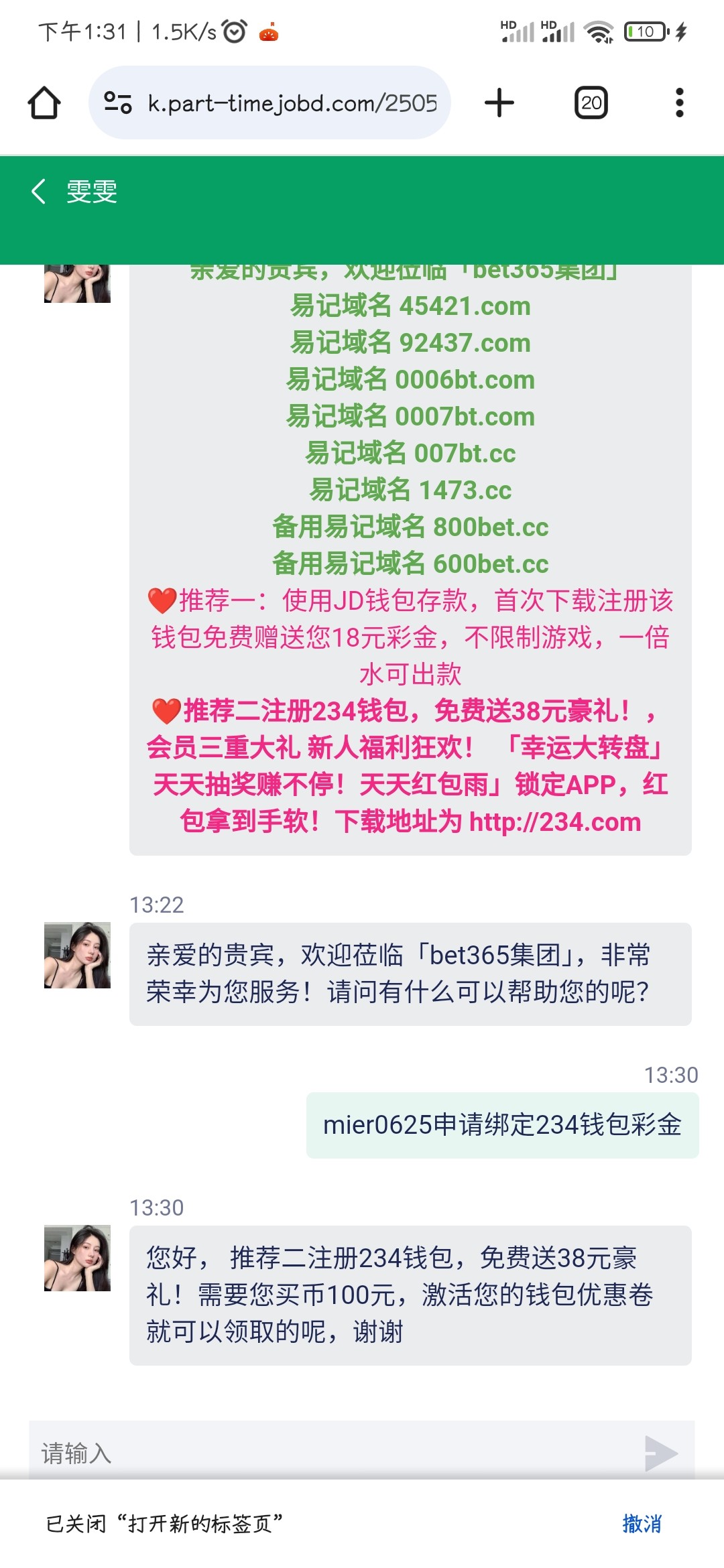 注册了绑定234钱包就可以找客服申请38,100即可提款了,链接1473.cc