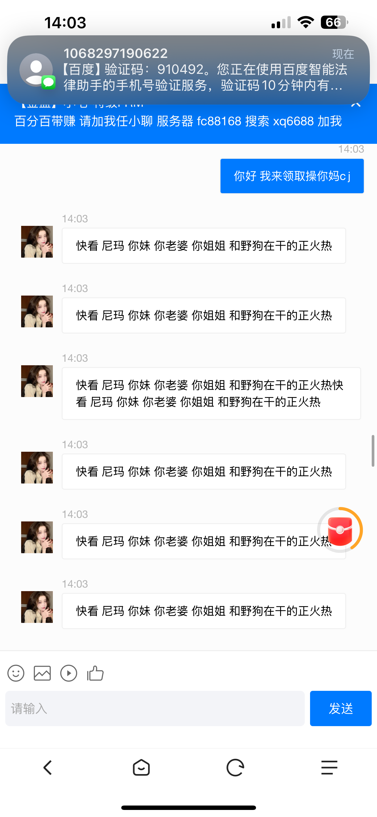 这种彩票狗代吊的一逼,动不动就轰炸我被轰炸好几次了,见一次骂一次