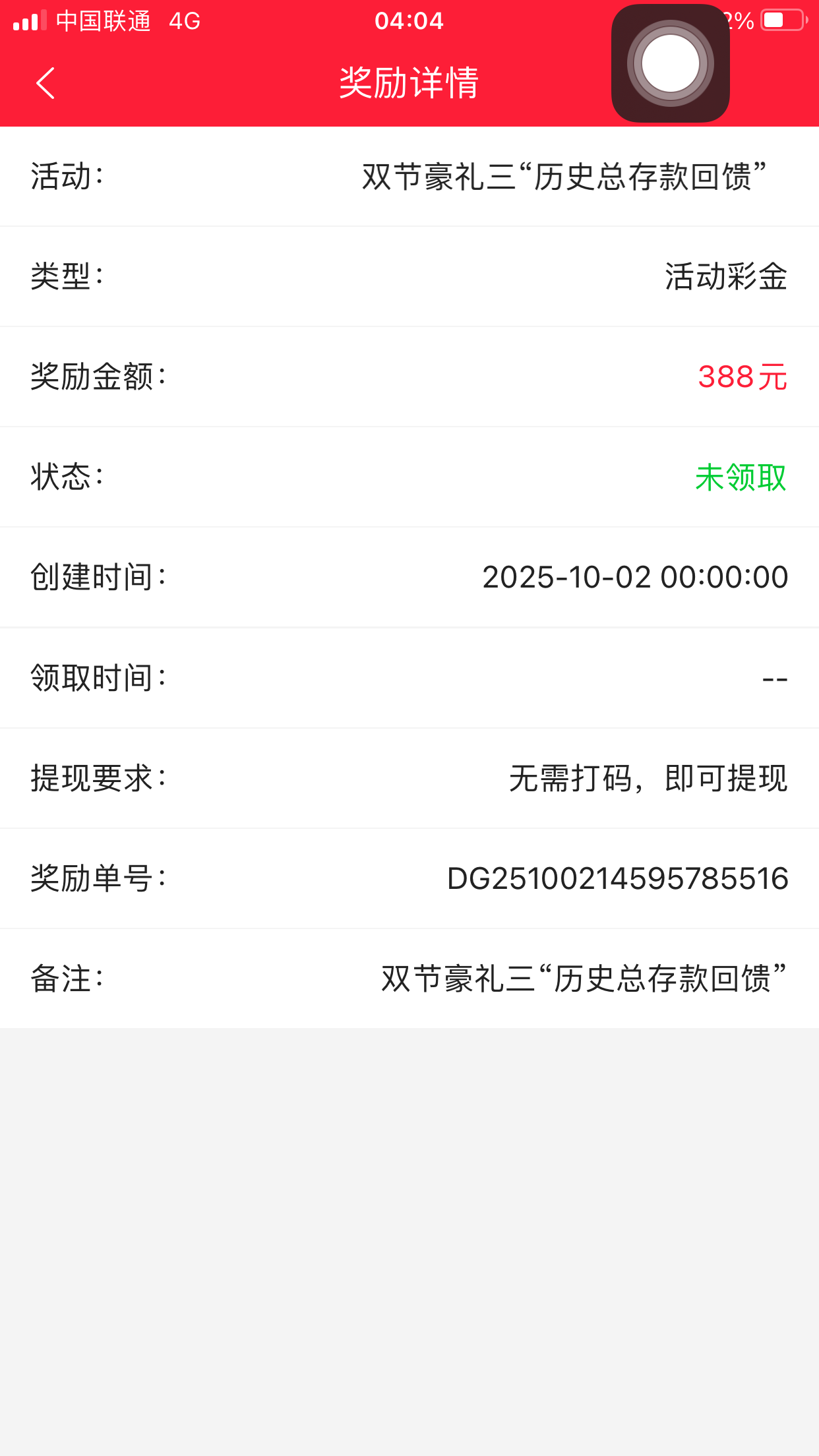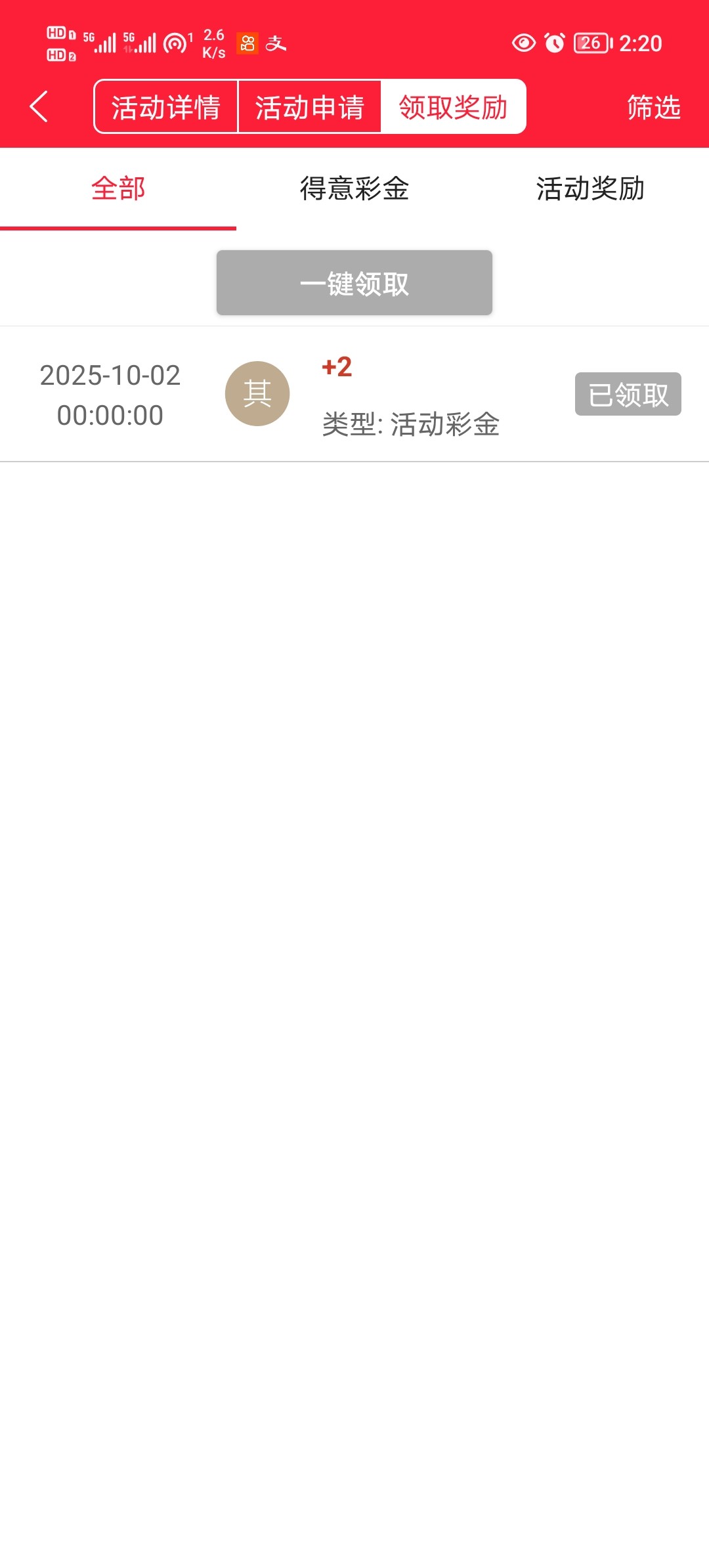 280回馈彩金领到了