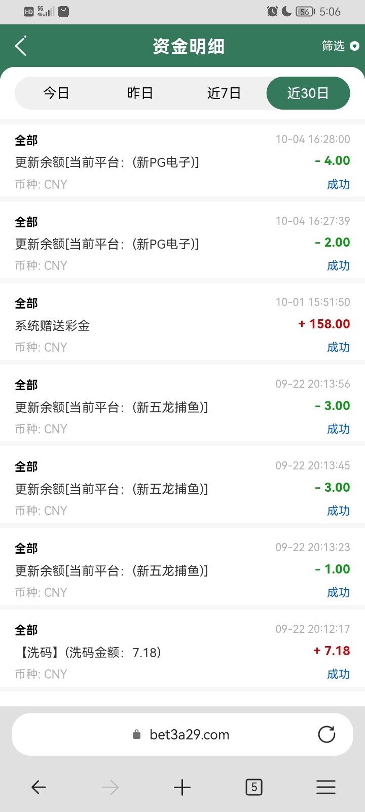 网址bet3.com vip2 6000流水这个平台玩了挺久的 最高出过1w 里面的pg是假的 老号没黑过只是封优惠了 新号今年注册了总共才打了6000流水 刚刚上号发现国庆赠送了158 出200