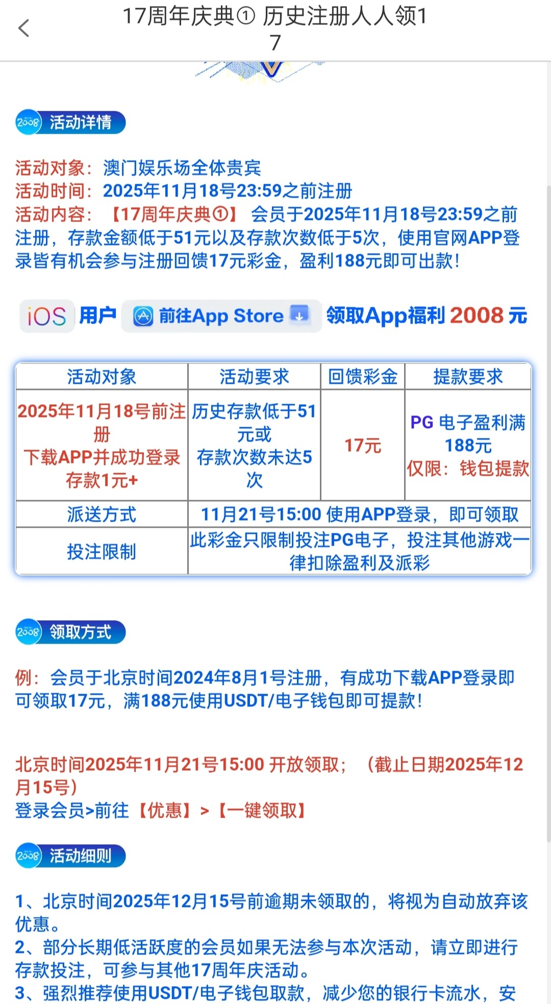 历史有存款的复合要求登录领取17彩金