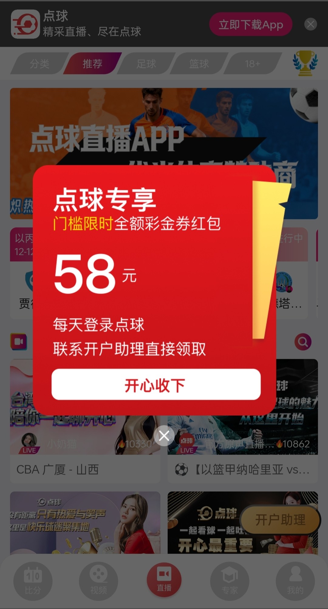 新用户先注册优米完善信息然后注册点球右下角开户助力发送优米账号申请58彩金,具体自测吧