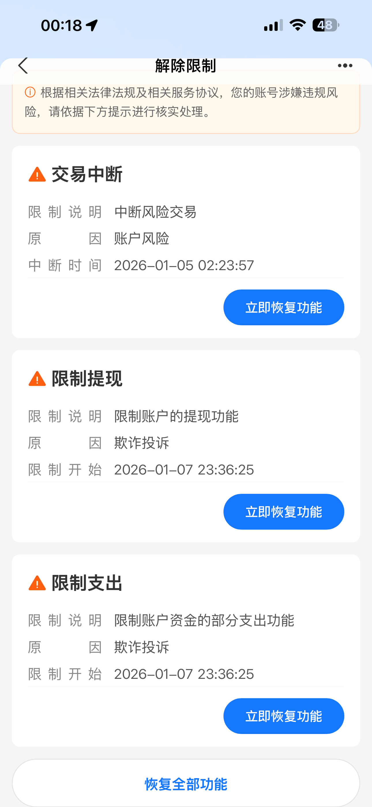 狗庄给一次吧 没用的,24年的时候就我就被举报过,支付宝客服说要么对方撤诉,要么就报警找警察,我当时就被封了半年,不知道这个没时间显示的要封多久