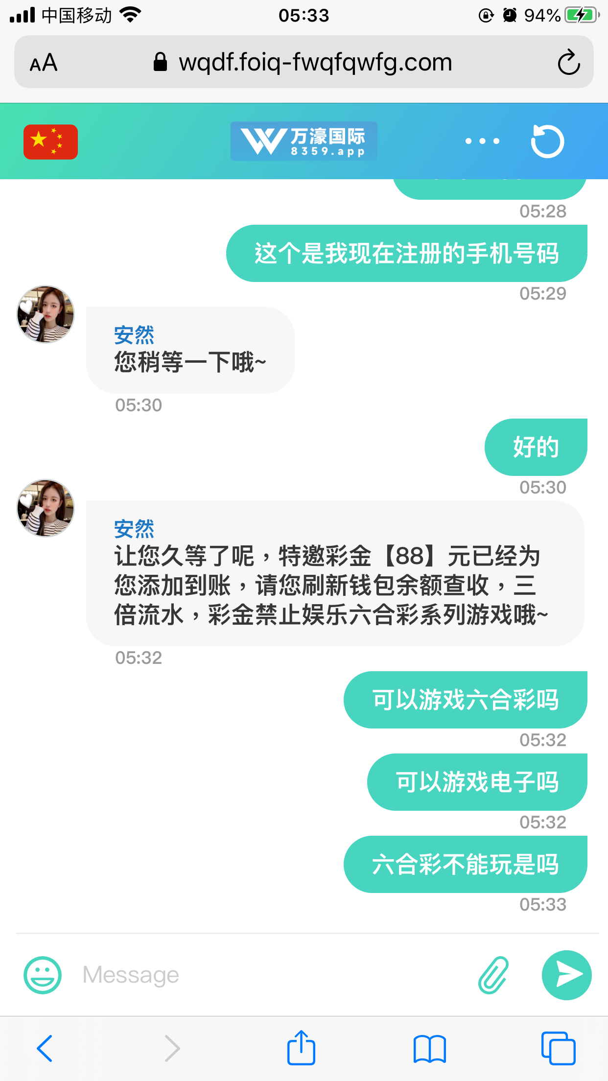 去找客服就说短信特邀 不知道查不查 让你下载一个聊天软件然后送288 提现到账